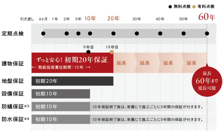 ※3:初期保証満了後に防蟻剤の再施工をご希望の場合は、後日あらためて無料点検を行い、その上で有償にて再施工いたします。